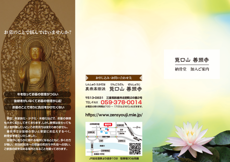 筧口山 善照寺 納骨堂加入のご案内のパンフレットができました