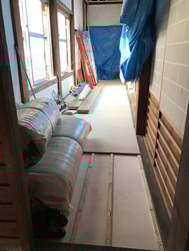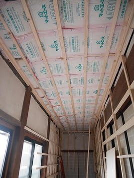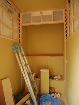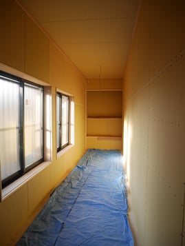 壁全体の下地材:石膏ボードの取付が終わりました。
